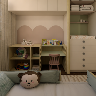 Na área íntima, por sua vez, a prioridade foi ampliar ao máximo a suíte que agora comporta closet e escritório no mesmo ambiente, separados apenas pela marcenaria planejada. A depender do uso do dia a dia, esses espaços podem se integrar ou não, mantendo a funcionalidade individual e também conjunta.